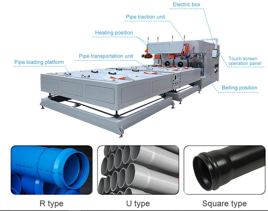 The PVC Pipe production line is mainly used in the area of agricultural water supply system, architectural water supply system(water supply and drainage pipe), pavement of cables and as well as different diameter and thickness of PVC Pipes. The complete PVC Pipe production line is composed by conical twin screw extruder, pipe extrusion mold, vacuum calibration tank, haul off machine, cutter and stacker, belling machine (socketing machine). The main extruder and haul off we adopts ABB inverter, vacuum pump and motors adopt high quality famous brand. Haul off machine has two claws, three claws, four claws, six claws and eight claws accord to different pipe diameters. For pipe cutting machine has saw and planetary cutting type, which additionally attached with the meter counter and intensifying device. The production line is easily installation and operation, simple maintenance with reliable quality.